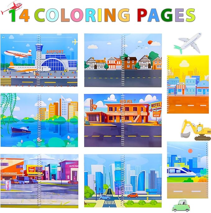 - Rich Content: Our OIBITUR sticker book contains 8 different styles of scenes. Your kids can stick 42 vehicles stickers on these scenes to complete different pictures. There are also two matching games, which will definitely enrich your child's leisure time!