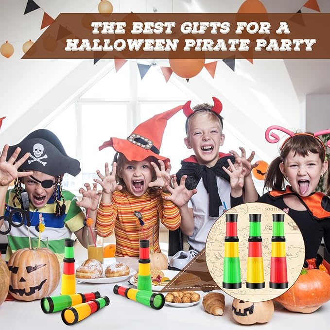 - Pirate Themed Delights: turn your gathering into an unforgettable pirate event; From a birthday bash to a themed adult party, our spyglass mini monocular, with their striking colors and detailed pirate theming, will transform your event into a ship of seas adventure