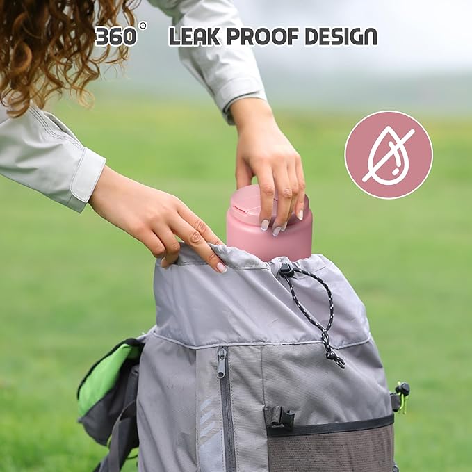 - 100% Leak Proof :Our food thermo comes with a thick silicone gasket. It is full sealed. So you can toss it in your bag or insulation bag without worrying about spills. Wide mouth design are also very easy to clean.