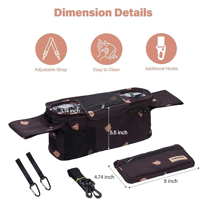 - Fits All Strollers – Universal Compatibility: Adjustable velcro straps and carabiner hooks make it easy to attach to any stroller model, from jogging strollers to travel systems.