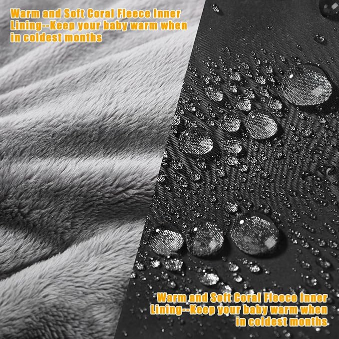 - Cozy Stroller Cover for Winter : Yoofoss stroller footmuff is made of ultra-thick and soft coral velvet lining. Easily pull the drawstring at the top to form a hood to wrap around your baby's head, fully protecting your baby from the cold. No need to prepare a blanket or jacket, your baby still can be wrapped with warmth even during cold weather walks with our stroller winter cover.
