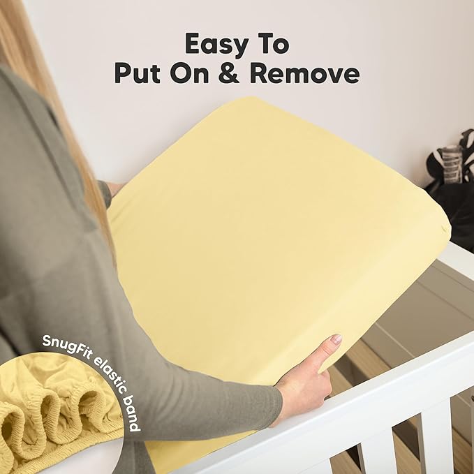- High Quality Elastic Band - Our organic cotton crib sheets, use premium elastic SnugFit Band seamlessly concealed to ensure these standard crib sheets stay in place securely for safe and soothing sleep.