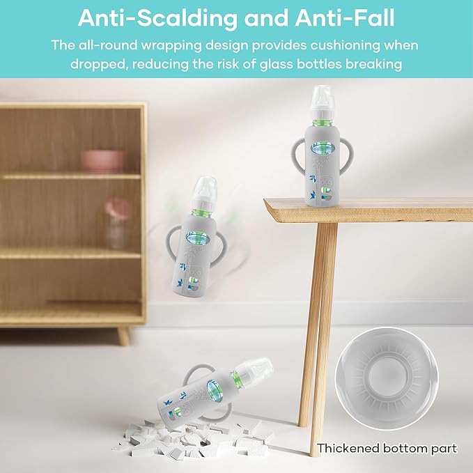- 【Excellent Protection】- Our bottle sleeves use a full-surface silicone wrap design. Even if accidentally dropped, it can protect the bottle from being scratched or even broken. This is a necessary maternal and child supplies for families who are used to using glass bottles, and there is no need to worry about the bottle always being damaged and broken.