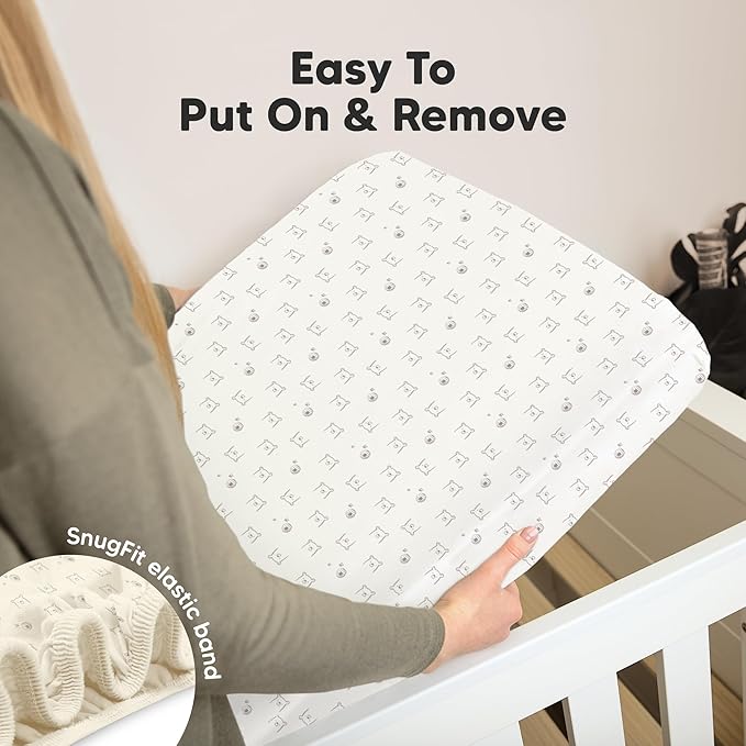 - High Quality Elastic Band - Our organic cotton crib sheets, use premium elastic SnugFit Band seamlessly concealed to ensure these standard crib sheets stay in place securely for safe and soothing sleep.