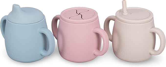 - FIRST STAGE INFANT DRINKING CUP: Our 4-in-1 cup is designed to help your little ones move from bottle-feeding to drinking independently, promoting fine motor skills and encouraging self-feeding. Made from soft, flexible silicone, these cups are gentle on your baby's gums and teeth while providing a durable, spill-resistant solution.