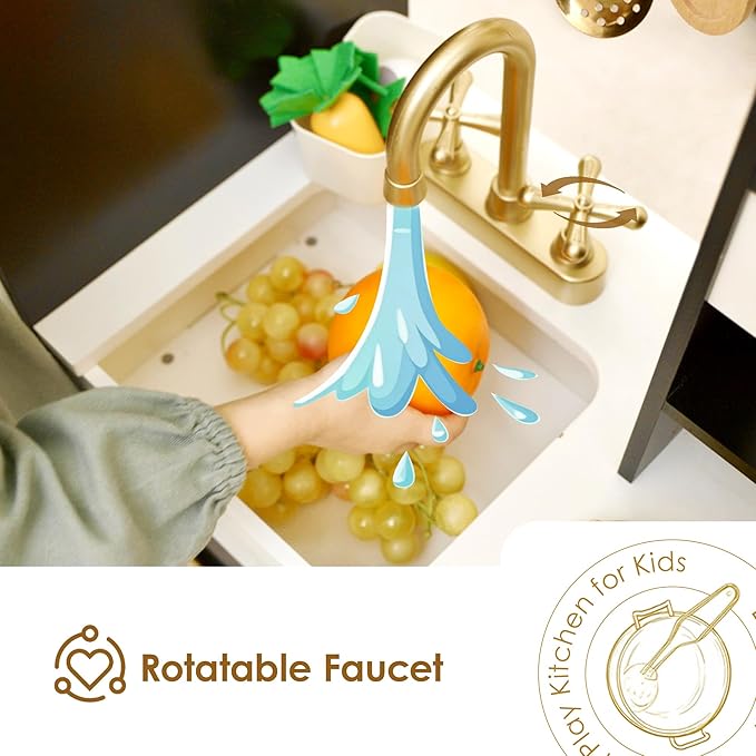 - Interactive Montessori Kitchen Experience:spark imaginative role play with realistic faucet oven and ice maker—develops sensory and motor skills through hands-on activities for ages 3 and up