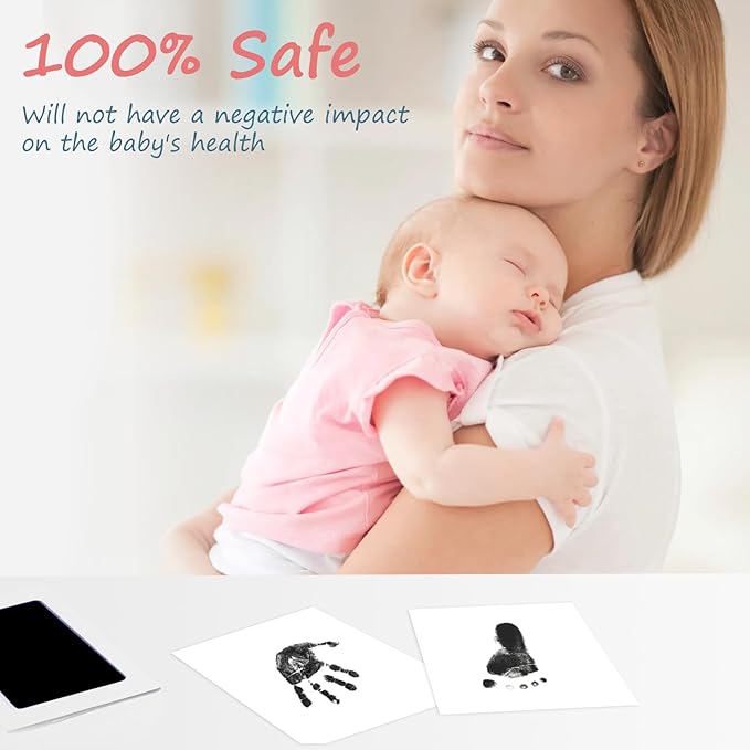 • [Perfect Gifts]: This baby ink hand and footprint kit measures 5.0"x3.2" and has an ink window of 3.7"x2.3".Ideal for newborn baby hand and footprint, use the baby inkless ink pad, you will have personalized baby footprint keepsake, it's not only for baby shower gifts but also for pet birthday gifts.