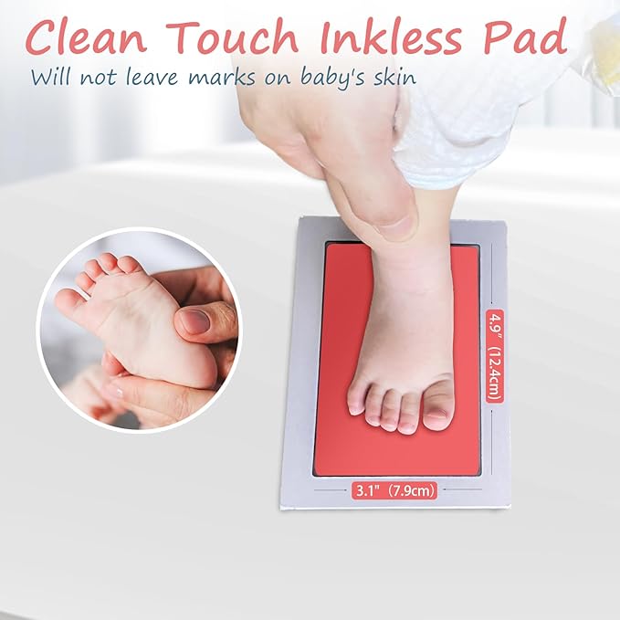 • [Perfect Gifts]: This baby ink hand and footprint kit measures 6.0"x4.2" and has an ink window of 4.9"x3.1".Ideal for newborn baby hand and footprint, use the baby inkless ink pad, you will have personalized baby footprint keepsake, it's not only for baby shower gifts but also for pet birthday gifts.