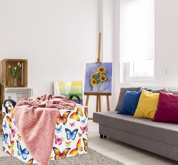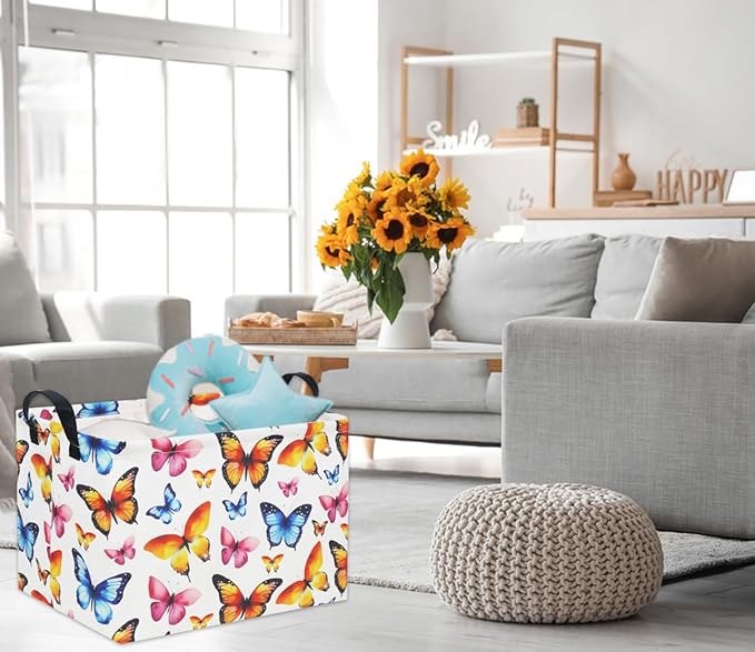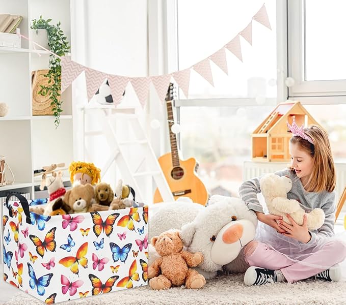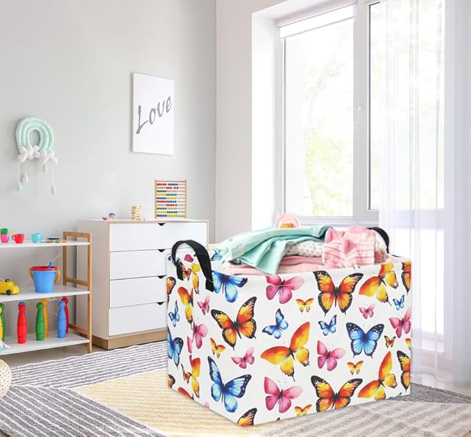 HIYAGON Kids Empty Baby Girl Basket - Rainbow Decor Butterfly Organizer