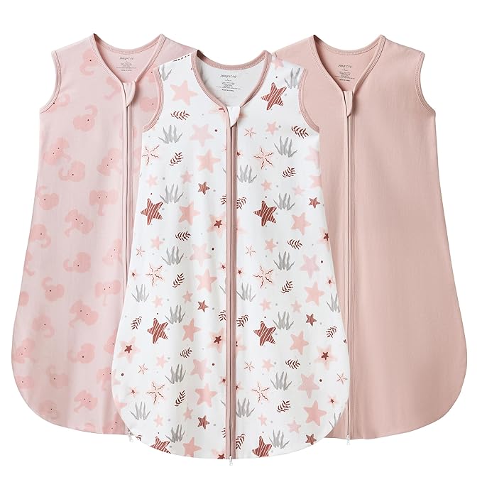 JELLYMONI Baby Sleep Sack 6-12 Months 0.5 Tog Wearable Blanket for Baby, 100% Cotton 3 Pack Infant Toddler Sleeping Sack Lightweight Soft 2-Way Zipper Sleepsack