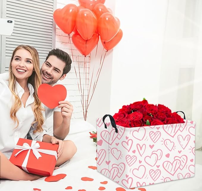 - MATERIAL:The valentines day basket basket is made of durable canvas &The inner lining is made of waterproof fabric; sturdy metal rod frame around the top keep the basket shape.