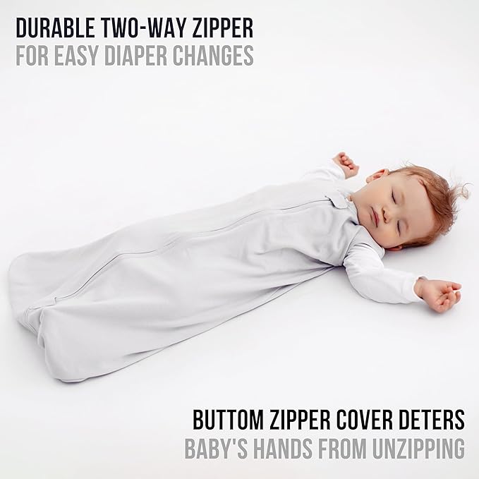 - 【GAME CHANGER FOR MIDNIGHT CHANGES】— Our wearable blankets for babies come with strong, long-lasting 2-way zippers that can be unzipped from the bottom, making diaper changes a breeze. Plus, the two-way zippers at the top eliminate the hassle of fastening them at your baby's chin, adding to the overall ease of use for both parents and babies. This innovative design of our baby sack sleepers is truly a game changer for frequent midnight changes.