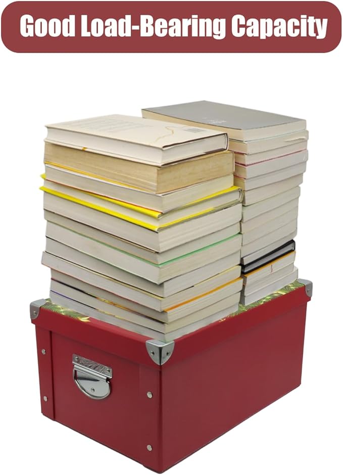 GUOZI Collapsible Storage Box, Decorative Memory Box with Lid & Metal Reinforced Corners, Cardboard File Bin with Handles, Organizer Gift Box for Keepsake Toy Photos Office Nursery Wardrobe Bookshelf