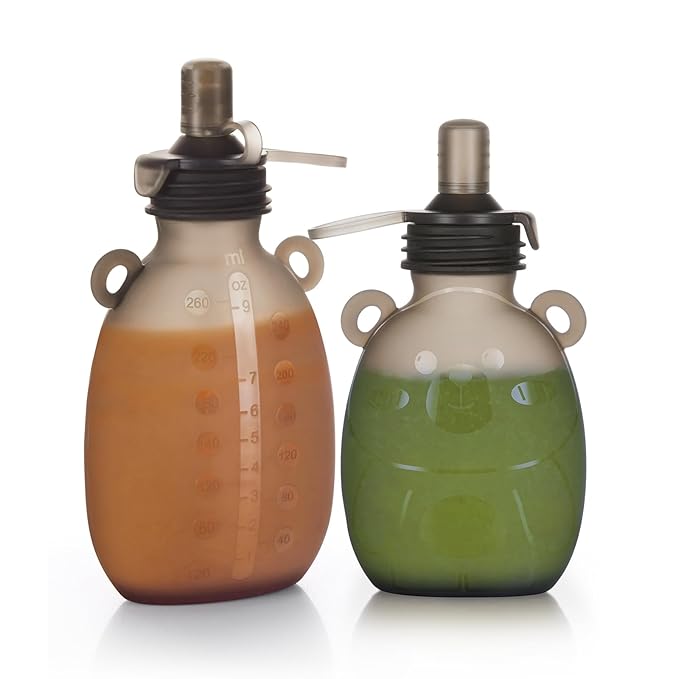 haakaa Happii Bear Silicone Goody Pouch Combo,Reusable Baby Food Pouches for Homemade Organic Purees, Juices, Smoothies, and Yogurt - Perfect for Toddlers and Kids - 2 Pack, 6oz+9oz