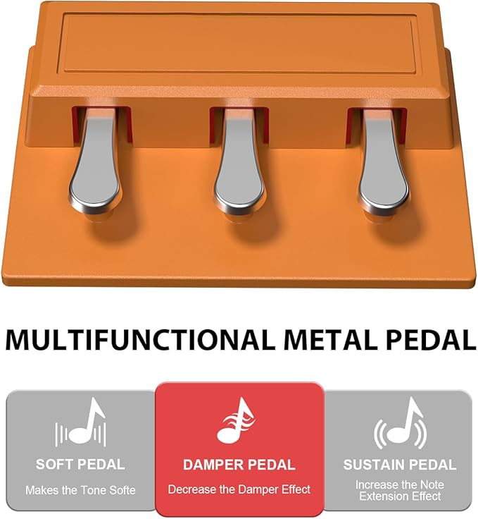 - Triple Pedal & Headphone Included: Practice silently and control your performance with the included sustain, soft, and sostenuto pedals, along with the 3.5mm headphone jack
