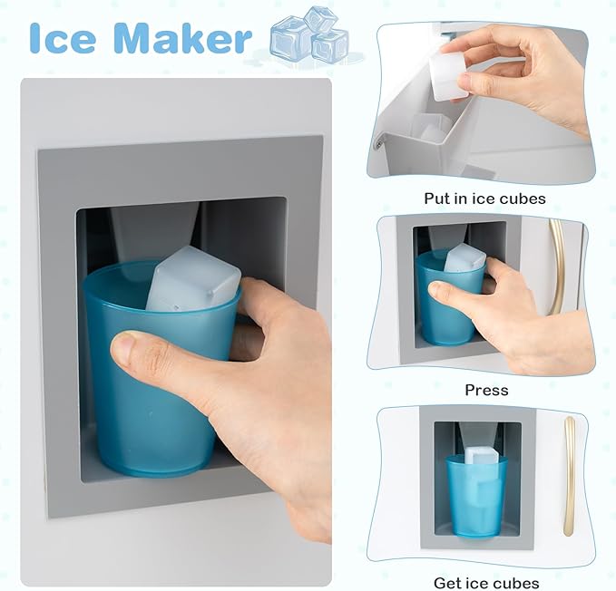 - 【Realistic Role-Play Cooking Experience】The kitchen set for kids consists of microwave, telephone, 2 stoves, ice maker, fridge, dishwasher and play sink with rotary faucet and knobs. This toy kitchen set stimulates real kitchen scenes and provides kids with unlimited fun of pretend play. Moreover, the “click” sounds of the oven knob add more realistic cooking fun.