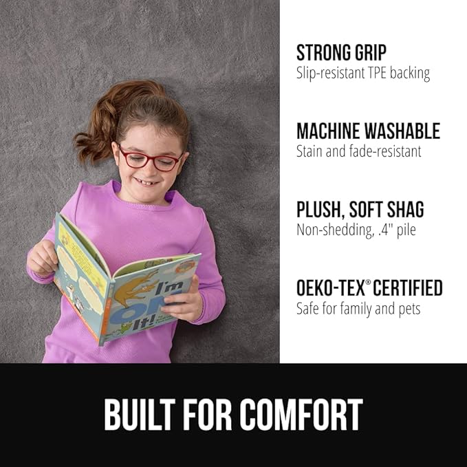 GORILLA GRIP Ultra Soft Washable Area Rug, 8x10, Stain and Slip Resistant Plush Thick Carpet for Bedroom Living Room, No Shed Floor Rugs, Pet Friendly, Dorm Essentials, Kids Nursery Home Decor, Gray