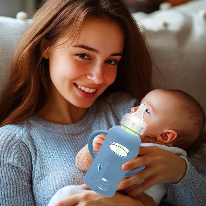 - Comfortably Use of Bottles - The fashion design silicone sleeve for Newborn baby bottles help grip for mom and also helps baby hold his bottle when it comes time for them to hold it . These bottle handles can be used for clean by dishwashers ,easy to clean.The silicone sleeve for Dr. Brown's bottle comes in cute colors and an adorable little cut out, so that you can easy to know amount of milk left