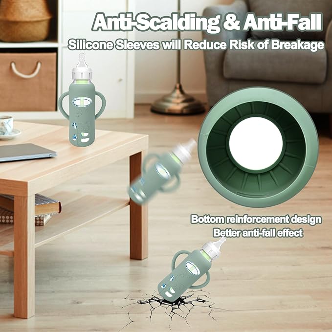 - Unique Designed for Baby Bottles - The silicone sleeves for dr brown bottles can against drop down,bumps and scratches. These are a must essential product for using glass baby bottles. They provide a more sturdy protection for glass baby bottle from breaking if dropped, which also unique handle design shape make it easier to grip and hold