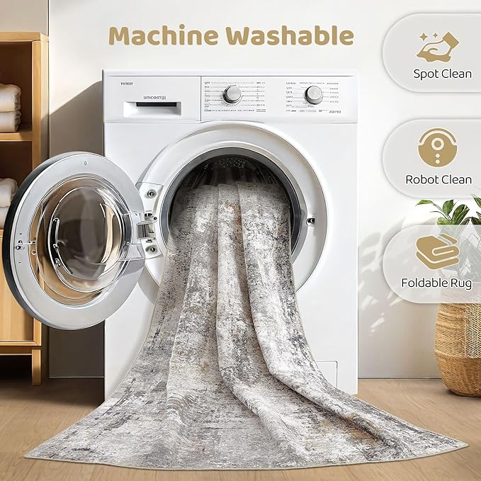 - MACHINE WASHABLE: Our rugs for living room is washable for easy care, directly toss in washing machine in cold water. for minor stains, simply vacuum with a hand-held vacuum or shake off outdoors. for water or coffee stain, wipe with a dry towel promptly