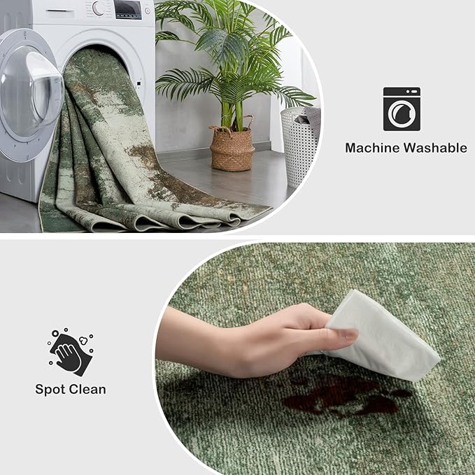 - Easy to Clean:The 8x10 green rug can be wiped or vacuumed to remove the fine dust and stains of everyday life. It can also be machine washed if necessary, and this low-maintenance design ensures you can enjoy life to the fullest. Tip: The washable rugs may be wrinkled, but don't worry. You can spray water on the creases and then place the rug face down or hang or lay it flat and the creases will disappear naturally after a few days of use