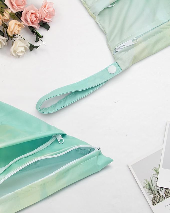 ALVABABY 2pcs Cloth Diaper Wet Dry Bags Waterproof Reusable with Two Zippered Pockets Travel Beach Pool Daycare Soiled Baby Items Yoga Gym Bag for Swimsuits or Wet Clothes 2LM13