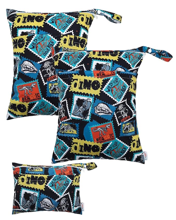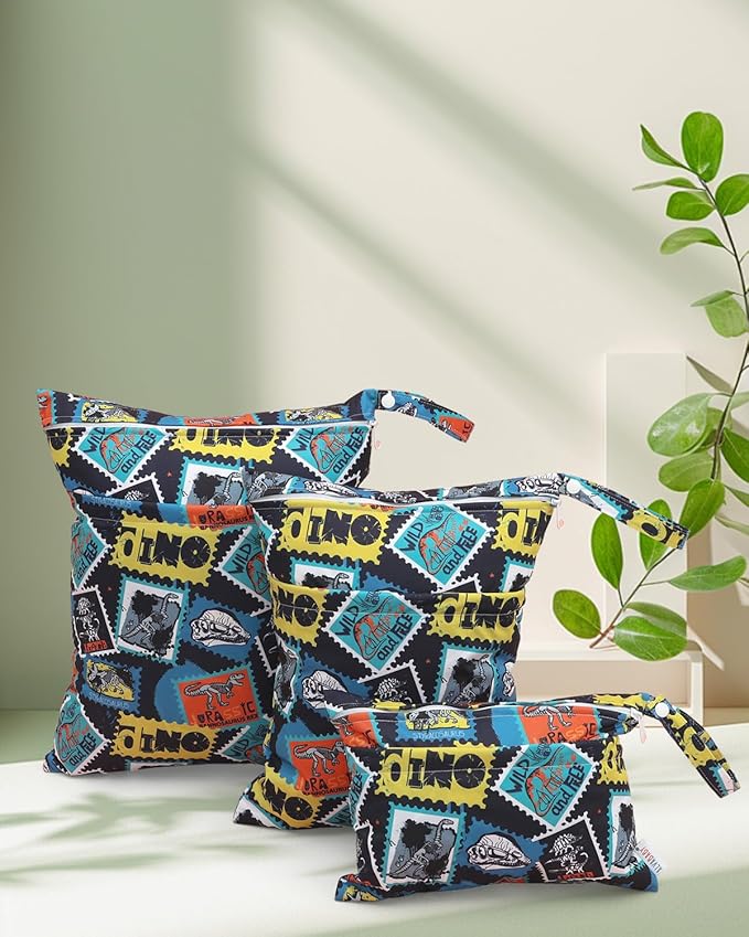 ALVABABY 3 Cloth Diaper Wet Dry Bags Waterproof Reusable with Two Zippered Pockets Travel Beach Pool Daycare Soiled Baby Items Yoga Gym Bag for Swimsuits or Wet Clothes Small medium Large 3L-SML09