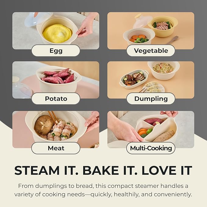 - From Purees to Family Feasts: One pot does it all! Prepare baby food, steam dumplings, or bake banana bread - all in a compact, stylish microwave steamer bowl that fits any kitchen (and comes in trendy colors!)