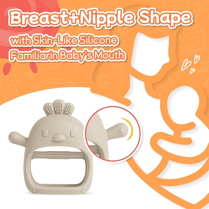 - Easy Toy for Teething Baby - The silicone teething mitten is the perfect solution for babies who aren't yet able to hold onto teethers. The soft hand teether fits over little hands, and the inner bar provides extra grip support for babies to grasp. Plus, the mitten protects babies from chewing on their hand or anything else they could get their teeth on. The soft silicone baby teether is skin-soft to mimic breast feeding, helping further soothe fussy little ones.
