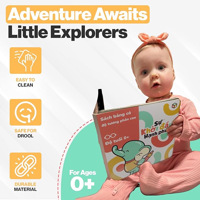 Happy Start Award-Winning High Contrast Board Book - Newborn Black & White Baby Cards, Easy to Clean, Hospital Approved, Stands on Its Own, Tummy Time Toy, Ages 0+ (Vietnamese)