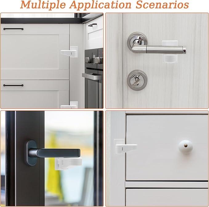 - Easy to install: The door handle lock does not need tools or drilling, simply tear off the adhesive tape and stick the lock onto the door to prevent the handle from being damaged (Please wipe the dust off the cabinet before installation)