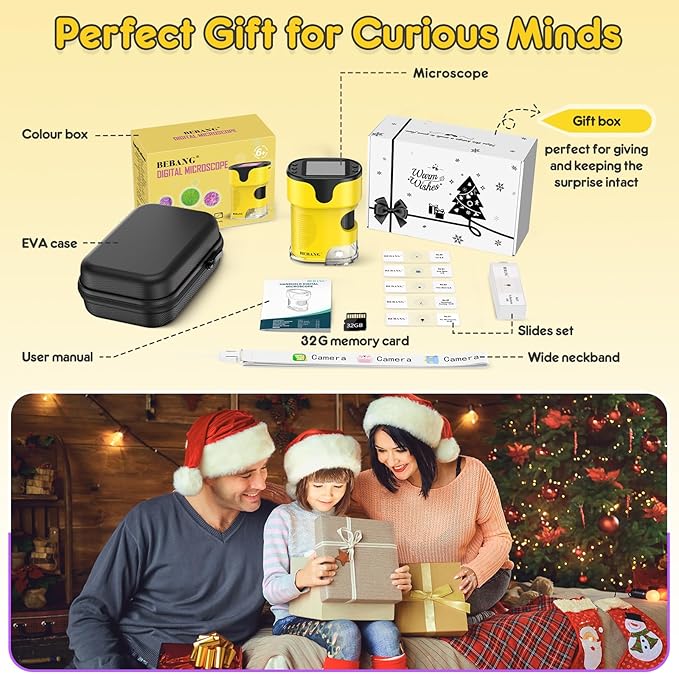 - Gift Box: A gift box has been added to the outside of the product's colour box. Not only protect the microscope and slides better, but also keep the surprise.