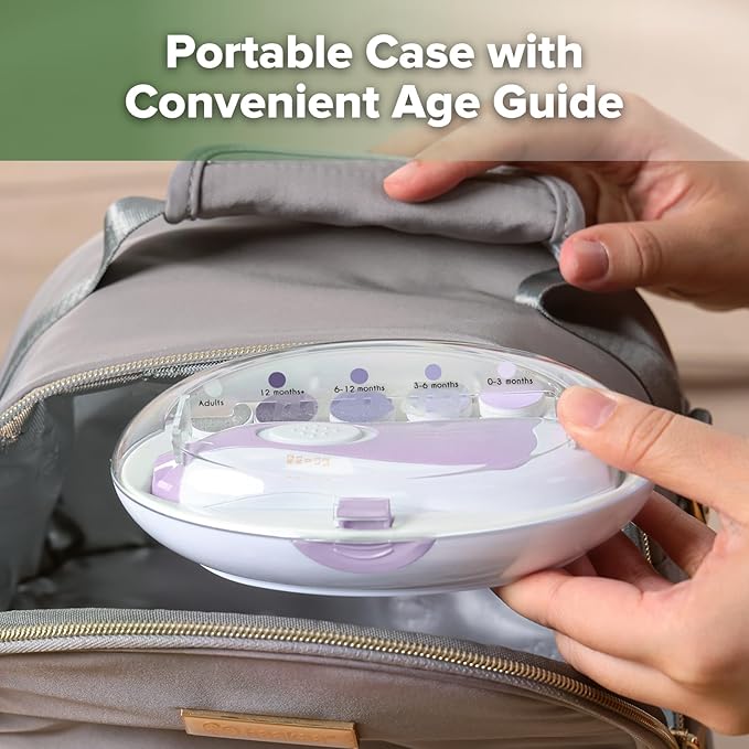 haakaa Baby Nail Trimmer Electric Baby Nail File Kit with LED Light, Baby Nail Clippers for Newborn/Infants/Adults Toenails and Fingernails, 6 Replacement Heads & Storage Case, Lavender