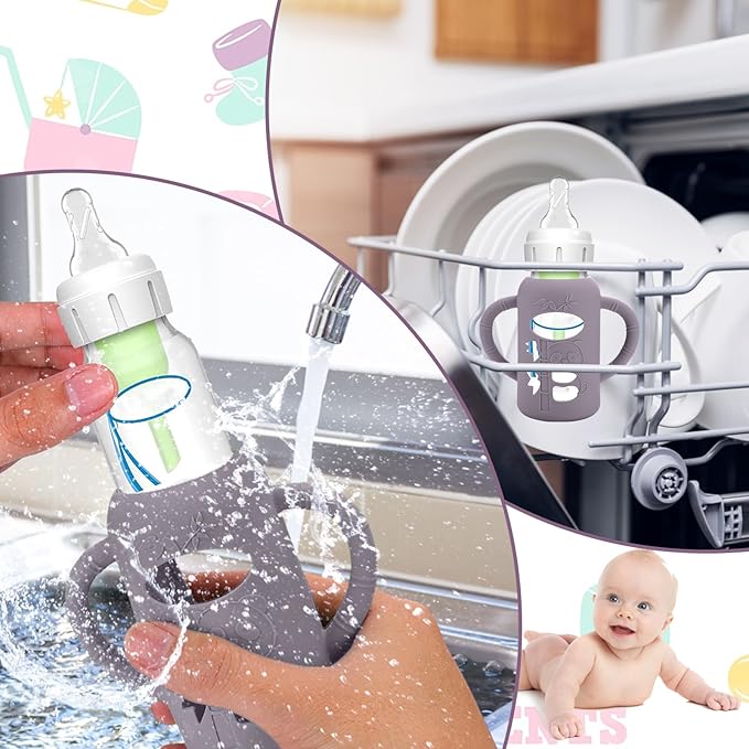 - Unique Designed for Baby Bottles - The silicone sleeves for Dr. Brown's Baby Bottles can against drop down,bumps and scratches. These are a must essential product for using glass baby bottles. They provide a more sturdy protection for glass baby bottle from breaking if dropped, which also unique handle design shape make it easier to grip and hold