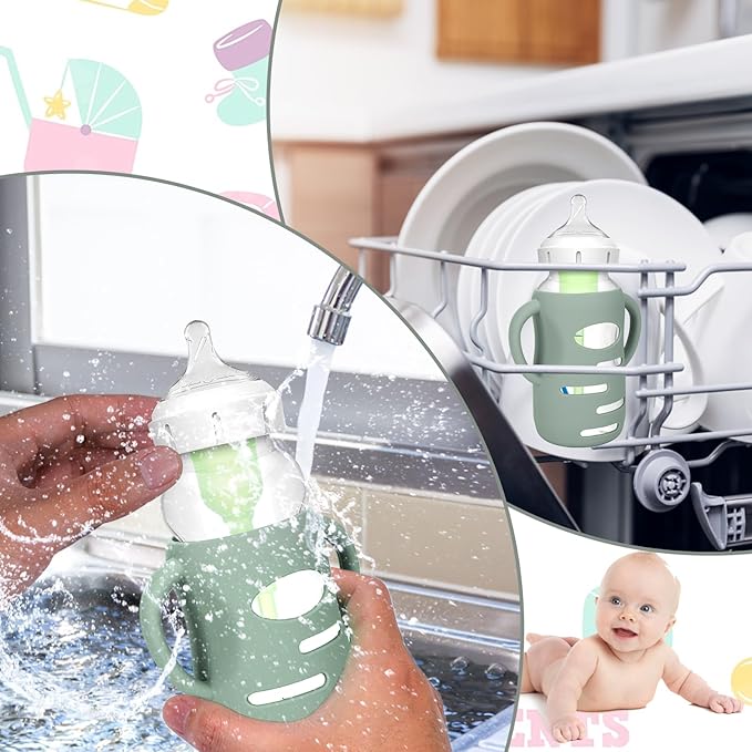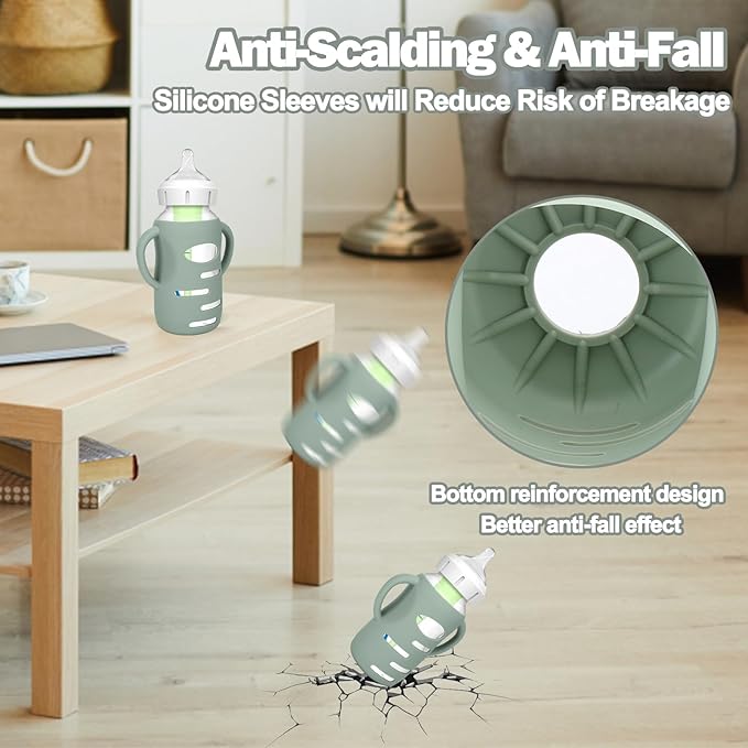 - Unique Designed for Baby Bottles - The silicone sleeves for Dr. Brown's Baby Bottles can against drop down,bumps and scratches. These are a must essential product for using glass baby bottles. They provide a more sturdy protection for glass baby bottle from breaking if dropped, which also unique handle design shape make it easier to grip and hold