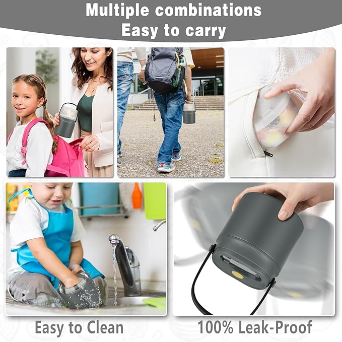 - Multi functional design - Each part of our 2-in-1 thermal food jar can be used separately, making life more convenient. The wide opening allows you to easily fill or remove food, and also makes it easier to clean the interior. Whether you want to enjoy snacks or a warm meal, this Insulated Lunch Containers offers a variety of choices for you. Recommended Age 3+.
