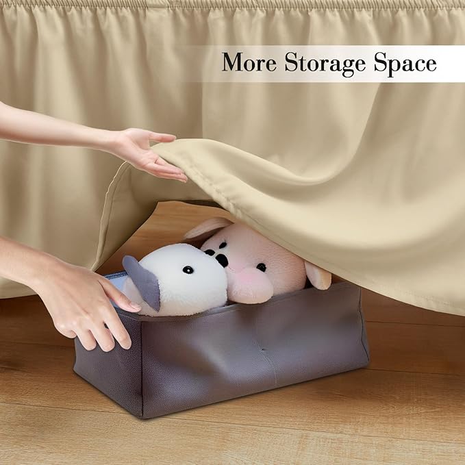 - Elegant Ruffled Design: Enhance your nursery with our khaki crib skirt, featuring flowy ruffles that add a charming touch to any theme, from whimsical to farmhouse aesthetics. 14" drop design helps to conceal easily storage space under the toddler bed.