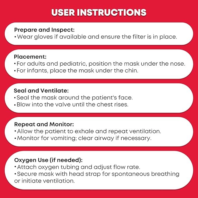 - SAFE & RELIABLE ONE-WAY VALVE DESIGN – Designed with a high-quality one-way filter valve and latex-free elastic head strap for a secure, hands-free fit to ensure effective resuscitation.