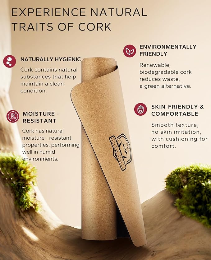 - Non-Slip Cork & TPE Workout Mat:The cork top offers natural grip that strengthens with movement, while the TPE base stays anchored to floors—no slipping during yoga, HIIT, or exercises. Stable for dynamic poses or intense routines, this non-slip large exercise mat keeps you secure and focused