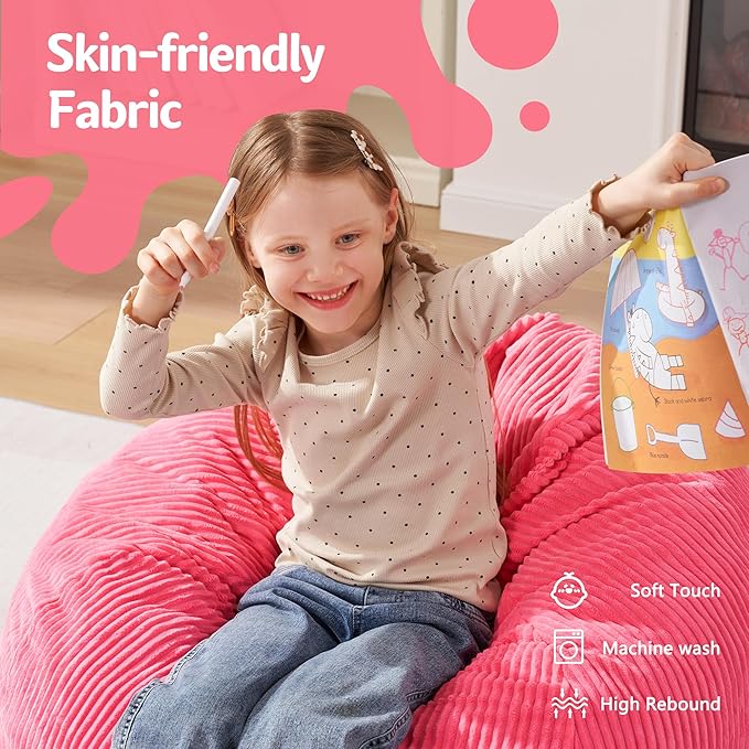 Homguava 2FT Bean Bag Chair,Teardrop Bean Bags Small Beanbag Chair with Memory Foam Filled and Ultra Soft Corduroy Cover for Living Room, Bedroom (Small,Pink)