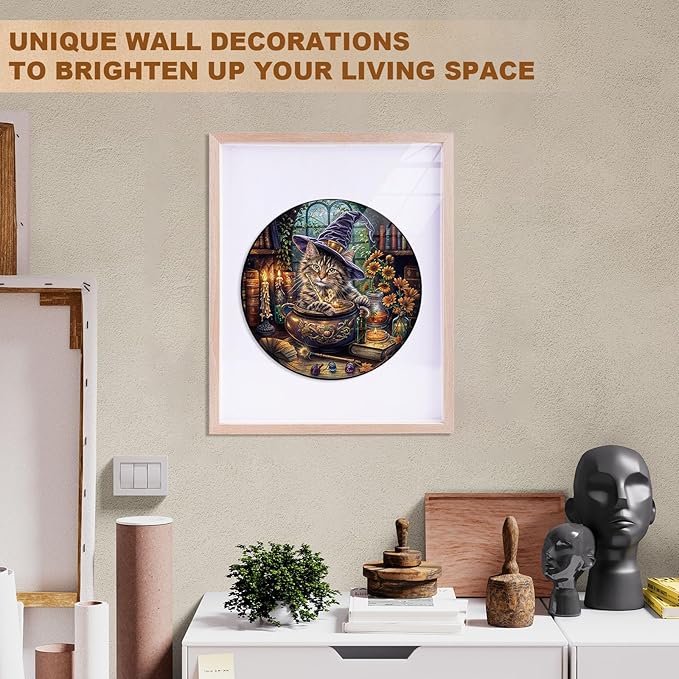 KAAYEE Wooden Puzzles for Adults, 3D Visual Effect Magic Feline Cat Wooden Jigsaw Puzzle Unique Shape Wood Puzzle Adult, 3D Effect Flat Puzzle Birthday Family Game (S-8.5 * 8.5 in-100pcs)