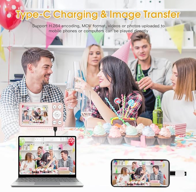 - 【Portable & Versatile Features】The portable camera is slim enough to fit in your pocket. It with rear HD selfie mirror, you can see your beautiful self from the selfie mirror, making your photos more natural and beautiful. And it supports H.264 encoding, MOV format, videos or photos uploaded to mobile phones or computers can be played directly, share beautiful moments anytime, anywhere.