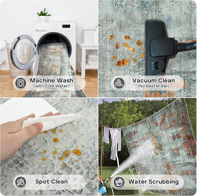 - Easy Maintenance: Keep your space fresh and clean with minimal effort. Our modern 8x10 area rugs are machine washable, spot-cleanable, and vacuum-friendly, making maintenance a breeze. Use a low-power vacuum regularly to remove dust or pet hair for everyday care. Avoid using bleach for best results