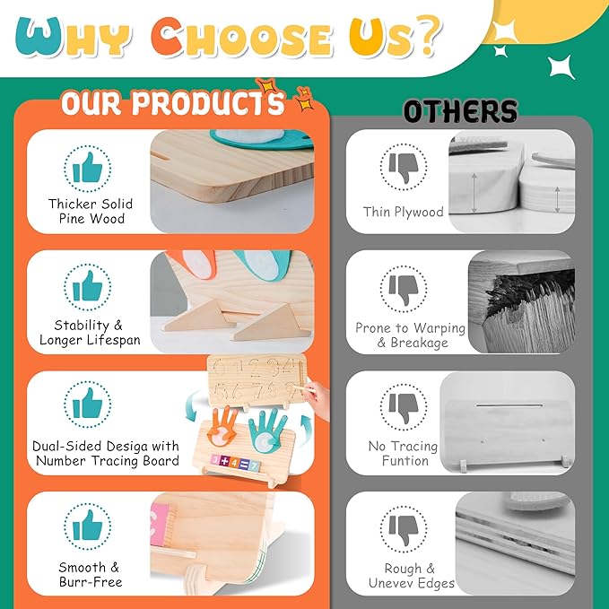 - DOUBLE-SIDED INTERACTIVE LEARNING: Designed for little hands, our toy simplifies addition and subtraction within 10. It helps kids build strong number recognition and counting skills. The back side includes a unique number tracing board with a wooden stylus, enabling kids to practice handwriting skills while learning math