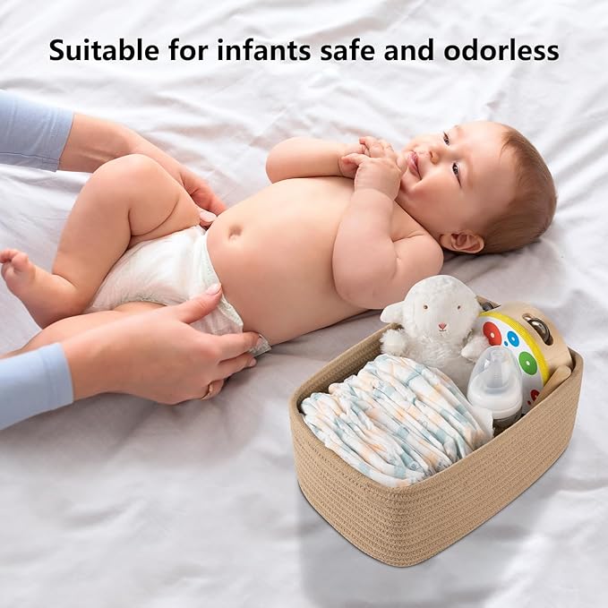 - [Premium Cotton Material]:Our cute baby storage baskets are made of high quality cotton hand-woven by workers, soft and odorless, no sharp edges and corners, very friendly to babies and pets, a good choice for baby-sitting baskets and dog or cat toy baskets