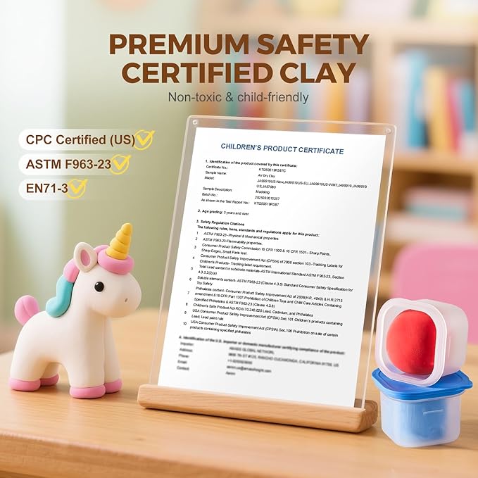 - Non-Toxic & Kid-Friendly Formula: Made with child-safe ingredients and tested to meet safety standards, this modeling clay is non-toxic and gentle on little hands—ideal for ages 3 and up.