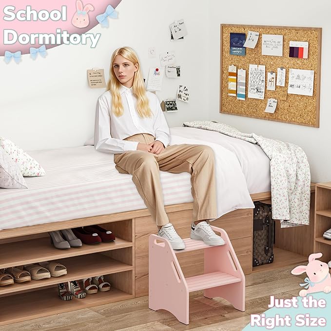 - IDEAL 13.6'' HEIGHT FOR HIGH BEDS: With an overall height of 15.75'' and a top step height of 13.6'', this stool is tailored for both adults and children facing challenges while entering or exiting the bed. It suits standard beds, high beds, lofty mattresses, and dorm beds, providing effortless access for adults and kids, thereby boosting convenience and safety. Moreover, it serves as a valuable addition to your closet