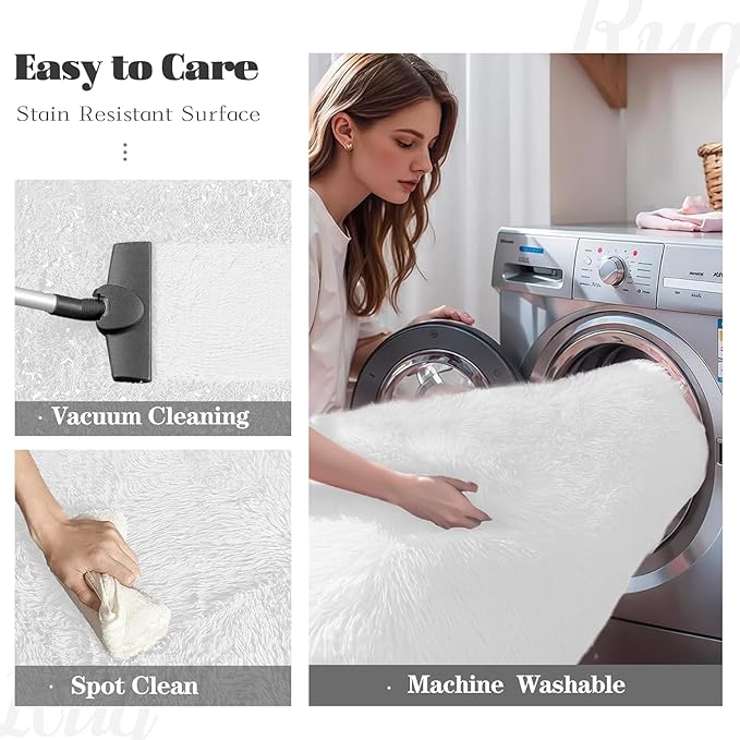 - MACHINE WASHABLE RUG: This shag rug 4x6 is designed for effortless care. This bedroom rug is machine washable for thorough cleaning, and it’s best to let it dry fully before using it again. For everyday maintenance, simply use a vacuum cleaner or spot clean as needed. It is easy to keep looking fresh with minimal effort.