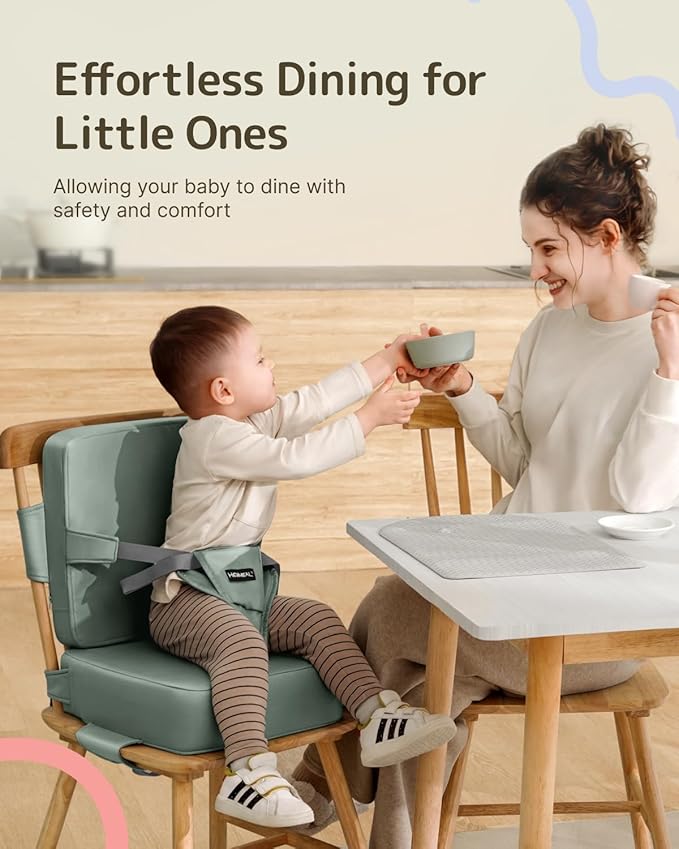 - Quick Setup & Portability: Achieve an effortless 1-minute installation with adjustable straps that fit most chairs. Lightweight and compact, this travel booster seat is easy for storage, make it ideal for home and travel family meals
