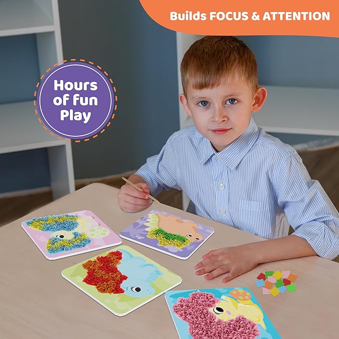- COMPREHENSIVE KIT: Includes 1400+ fabric squares, 6 foam boards with dinosaurs, 2 poke-in sticks, a poke-in pad, and an instruction manual, providing everything needed for a fun and complete craft experience.